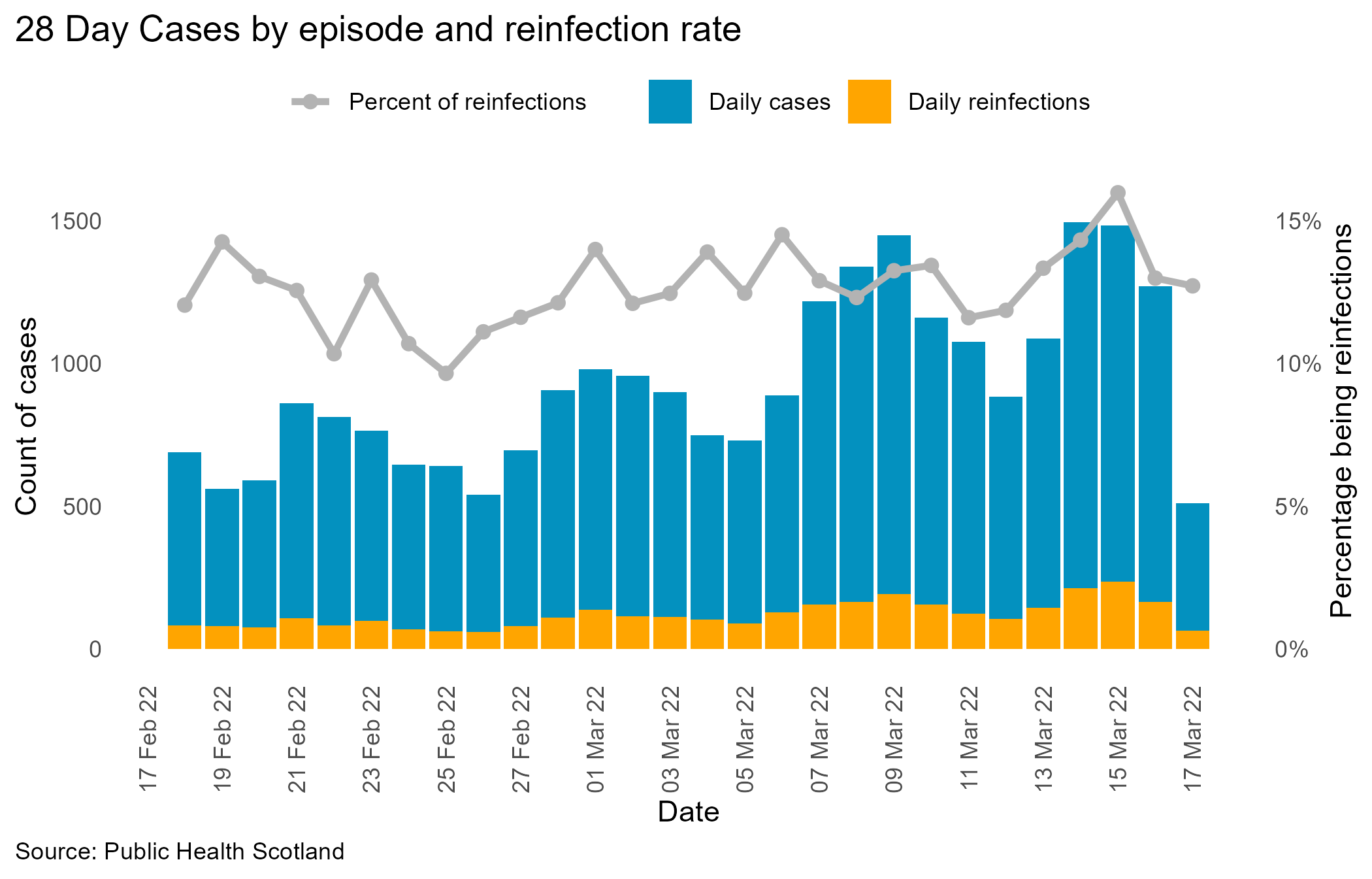 For this example, I’m just using the latest 28 days (at time of writing) and purely using counts, not rates. These are not rolling calculations, just straight counts direct from the data source.