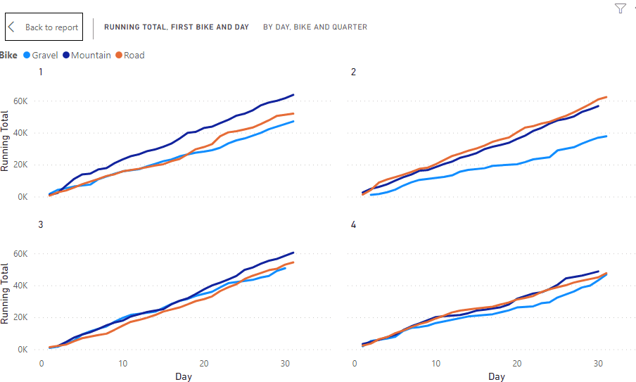 Small multiples are a new feature in PowerBI (as of the Dec 2020 release) and they are really well done.
